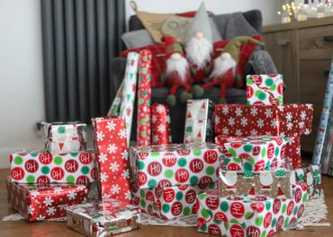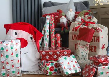 Bundle Wrapping perfect for Birthdays and Christmas. No fuss, simply packed and ready to rip open on the big day. Choose from a variety of high quality wrapping papers or provide your own. (Sacks and Stockings can be added as an optional extra.)